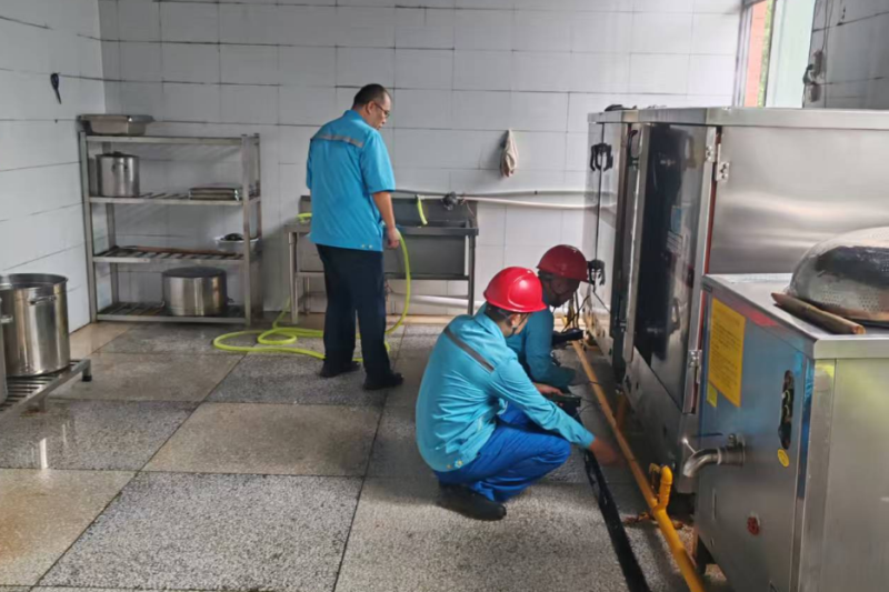 检查组对玉潭学校食堂、桂花园小学食堂等人员密集场所的燃气设施进行了全面排查。重点关注了燃气管道、阀门、报警器等关键设备的安全运行状况。在玉潭学校和桂花园小学的食堂操作间,检查组对燃气调压箱、灶具连接软管、熄火保护装置等进行了细致检查,并详细询问了食堂日常用气情况和安全管理制度落实情况,叮嘱食堂负责人务必严格落实安全用气责任,定期开展自查自纠,确保师生用餐安全。