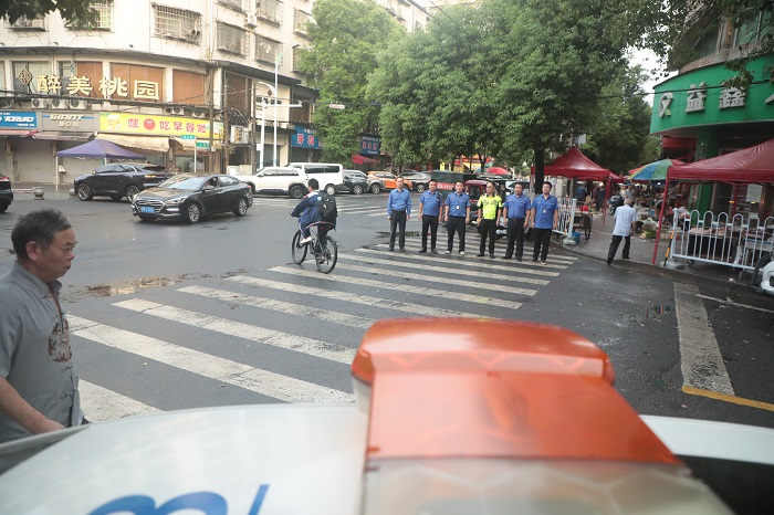 桃花江小学的交通和学生上学通畅、有序 陈明 摄