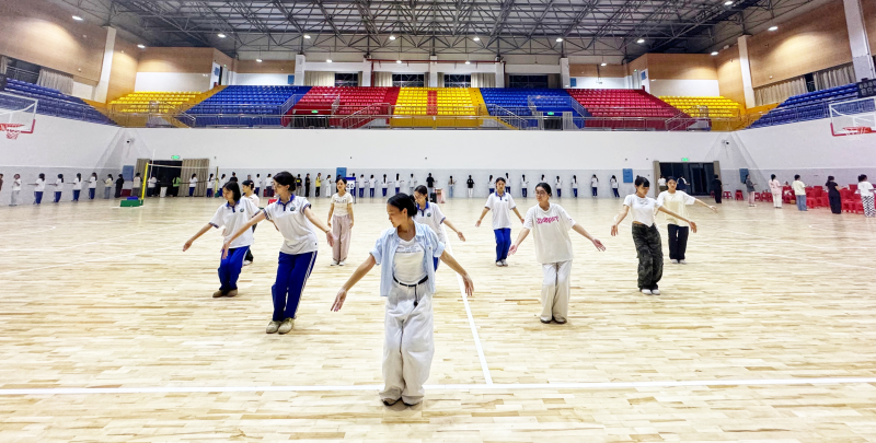 距离湘超联赛益阳主场开幕仅剩3天,桃江县职业中专学校校园里洋溢着别样的热情:数周以来,每天下午课后,由100名学生组成的香草美人方阵准时集结室内体育馆,在《桃花江竹海幻境》剧场指导老师林倩妮的带领下,反复排练湘超联赛益阳主场开场和中场秀表演节目。这个融合传统香草文化与现代体育元素的创意方阵,将成为9月20日赛事期间一道靓丽的风景线。