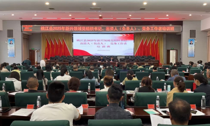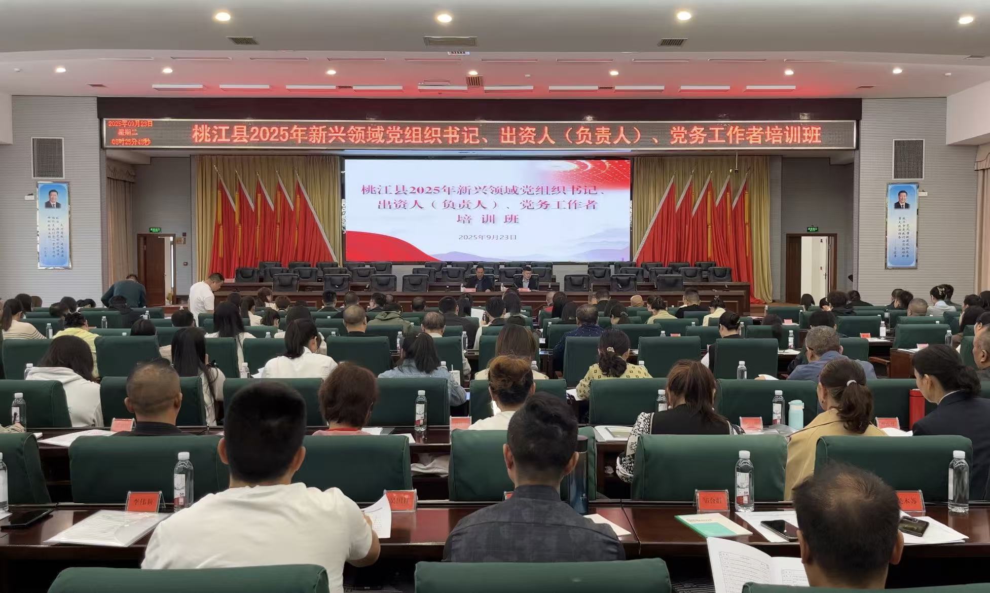 9月23日,桃江县2025年新兴领域党组织书记、出资人(负责人)、党务工作者培训班在县党政大楼附属楼三楼会议室开班。来自全县新兴领域党组织书记、出资人(负责人)、各综合(行业)党委及园区企业党委书记、专职副书记,新兴领域专(兼)职党建指导员和其他党务工作者等245人参训。