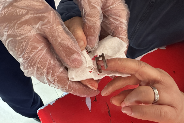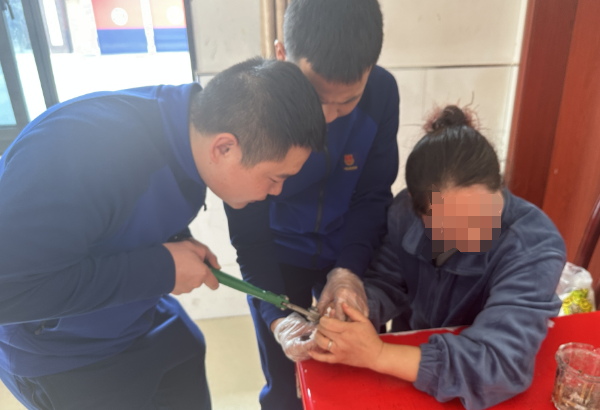 10月24日中午,一女子因使用削皮器不慎,左手中指被卡在刀片间无法取出,在多次尝试自救无果后,在家人的陪同下,该女子来到桃江县消防救援大队寻求帮助。