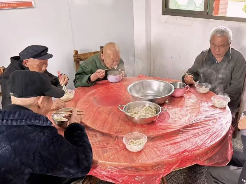 老人们围坐在一起吃饺子 尹妍昕 摄
