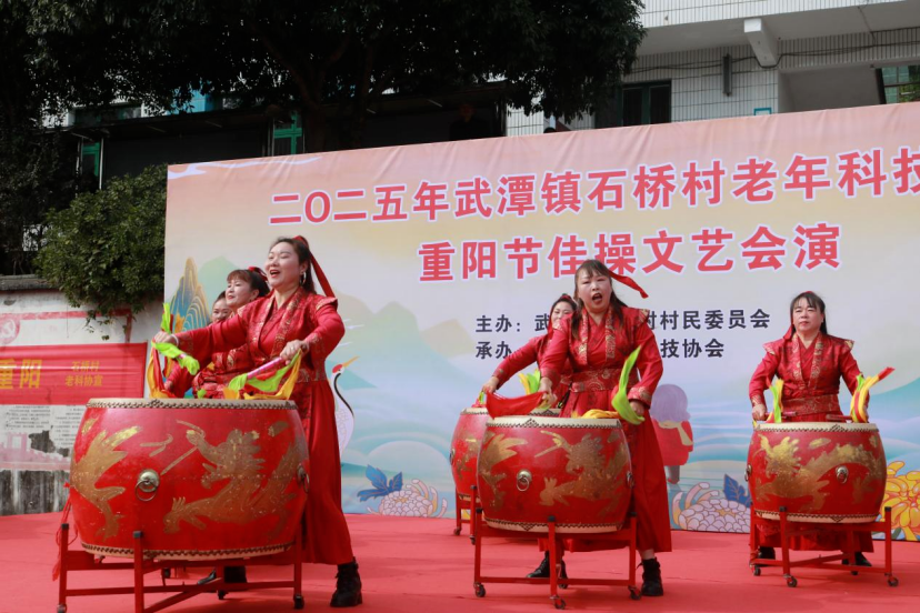 近日,武潭镇石桥村举办重阳节佳操文艺汇演活动。该活动汇聚了来自邻近区县共23支佳操队、文艺队及老年舞蹈队的600余名老年文艺爱好者。他们通过形式多样的佳操表演和富有地方特色的文艺节目,展现出新时代老年人健康向上的精神风貌。
