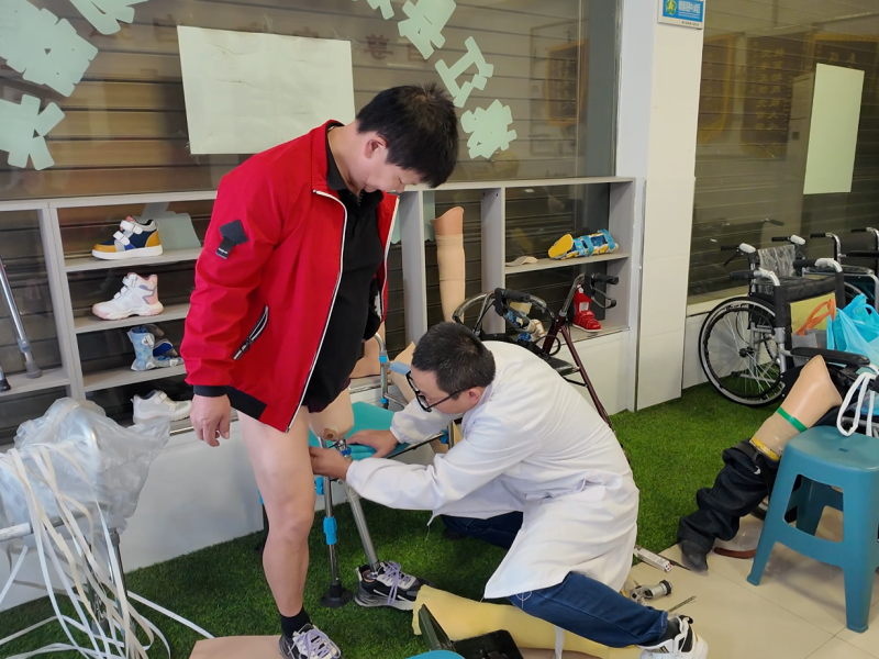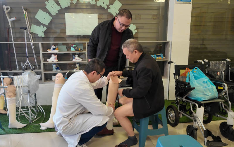 技术人员为残疾人安装调试假肢 莫非易 摄