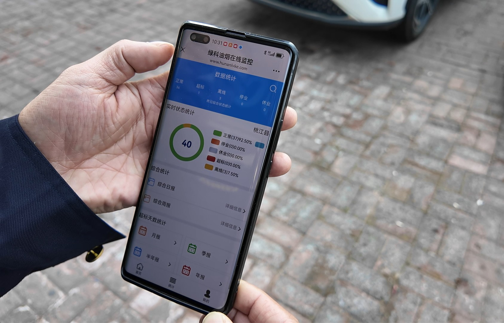 该设备可24小时实时采集餐饮企业油烟排放浓度、净化设备运行状态等数据,通过互联网技术自动上传至监管平台。执法人员只需登录后台,即可实时查看各餐饮单位的排放情况。县城管执法大队四中队副中队长卢智凡告诉记者,过去检查油烟,他们要一家家跑,爬上爬下看净化器,费时费力。现在在手机软件上就能看到哪家店净化器没开、排放超标了。这让他们对违法行为进行“点对点”的精准监测,督促他们自觉、规范地使用净化设备。