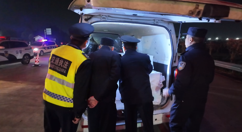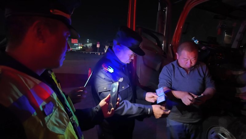 当晚19时许,在高速路口,执法人员分工明确、协作有序。交通运输部门执法人员率先引导过往货车、面包车等重点车辆靠边停稳,查验车辆营运资质,核对货单与实际装载是否一致;公安民警仔细核查驾驶员证件及行驶轨迹;应急管理部门执法人员则用手电筒逐一对车厢内部进行检查。