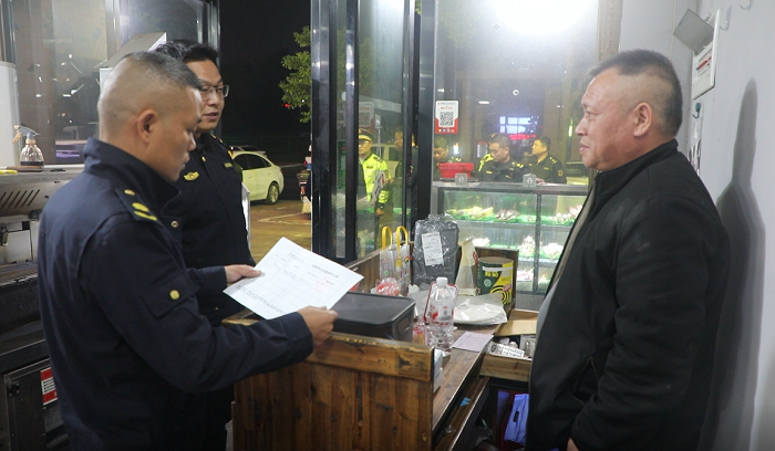 12月19日晚,执法人员分三个工作组,采用“边检查、边宣传、边整改”的工作模式,对城区雪峰山路、资江南路及金盆广场等夜宵烧烤集中路段,对未安装使用无烟烧烤炉具、油烟净化设施未清洗、集烟罩油渍多、露天烧烤油烟直排的餐饮夜市和露天烧烤等门店和摊点,按照“宽严相济,规范有序”的原则,进行专项整治。