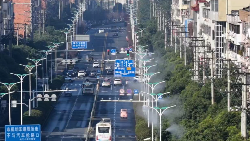 智能喷淋“上岗”,为桃江城市空气“降尘增湿”
