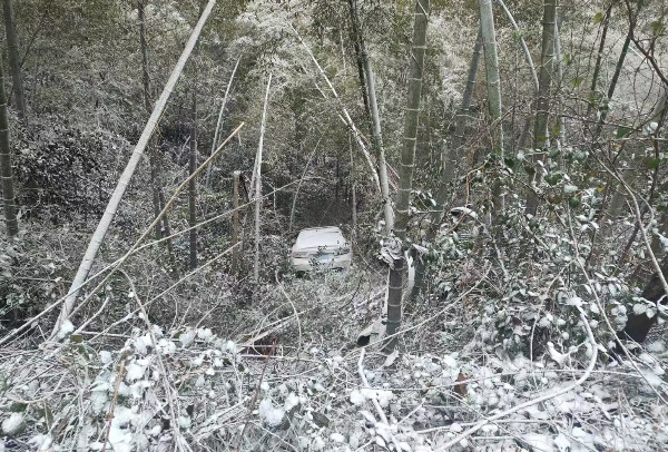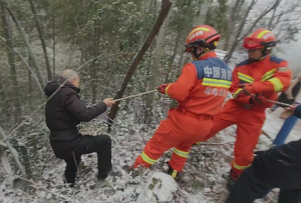 【应对低温雨雪冰冻天气】雪天车辆坠坡一人被困 桃江消防紧急救援