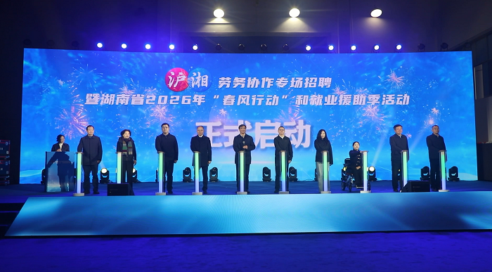 1月30日,沪湘劳务协作专场招聘暨湖南省2026年“春风行动”和就业援助季活动启动仪式在益阳奥林匹克公园体育馆举行。这场带来近4万个优质岗位的活动由湖南省人社厅、上海市人社局联合主办,省市县三级30余家单位协同参与,益阳各高校、职业院校同步组织毕业生参会。启动仪式后,全省14个市州将持续开展为期3个月的“四送”活动,通过密集招聘会、政策宣讲、技能培训等形式,让就业春风吹遍三湘四水,助力实现高质量充分就业。