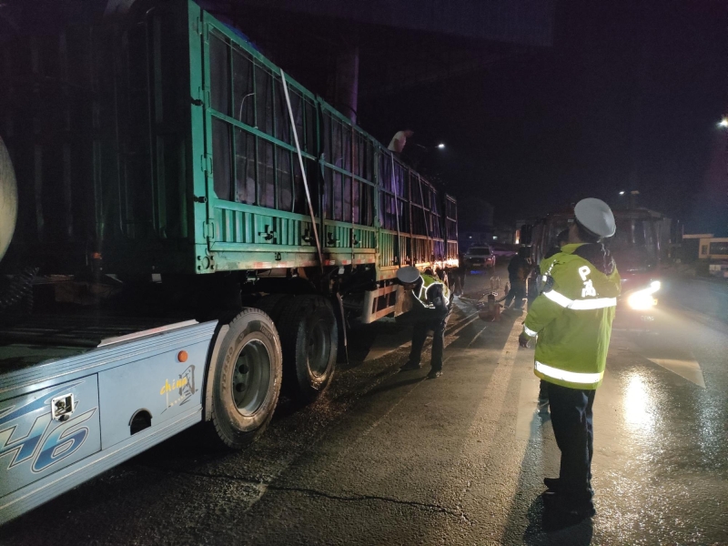 得知这一重大安全隐患后,民辅警与当地镇政府、派出所、以及高速交警、消防等部门分工协作,由消防人员压制火势,交警、派出所、高速交警对事发路段实施全面临时交通管控,快速划定警戒区域,疏散周边无关人员与车辆,严禁火源靠近,全力开辟安全救援通道,严防爆炸、火灾等次生事故发生。