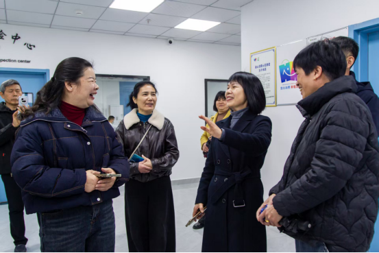 曾菊辉(右二)向消费者代表介绍食材检测中心功能布局 受访者供图