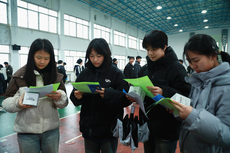 学生认真阅读宣传资料 丁或 摄