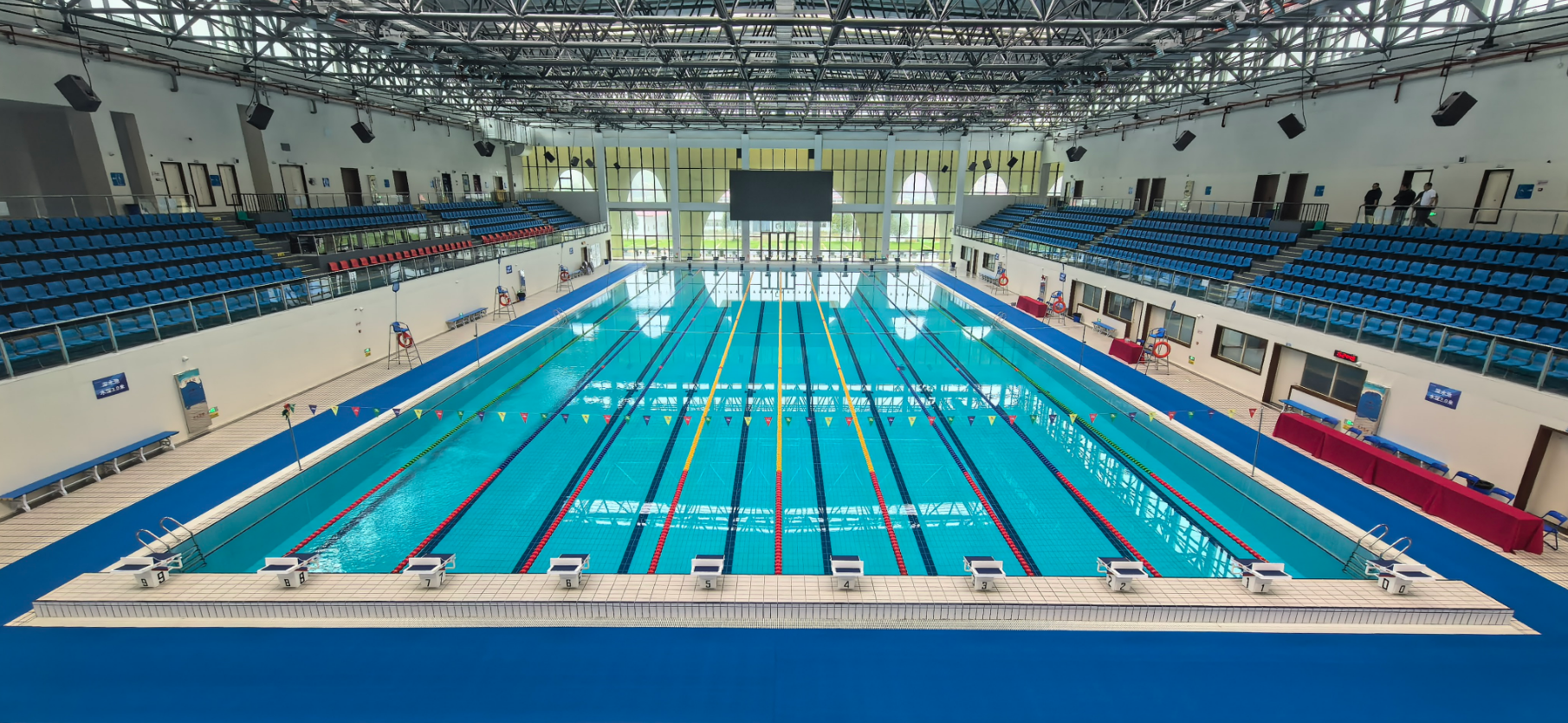 场馆科技亮点突出,专业度高。专业计时计分系统与高清赛事转播设备无缝对接,完全达到省级赛事承办标准,未来更具备承接国家级青少年游泳赛事的能力。
