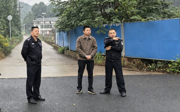 大队长张进(右一)邀请城市学院专家现场踏勘 秦滔 摄