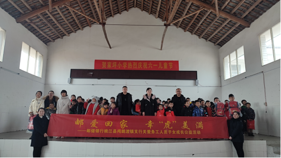 1月6日上午,邮储银行鸬鹚渡支行在沾溪镇贺家坪小学举办关爱务工人员子女成长公益活动,为贺家坪小学86名同学送去铅笔、笔记本、转笔刀等学习用品。