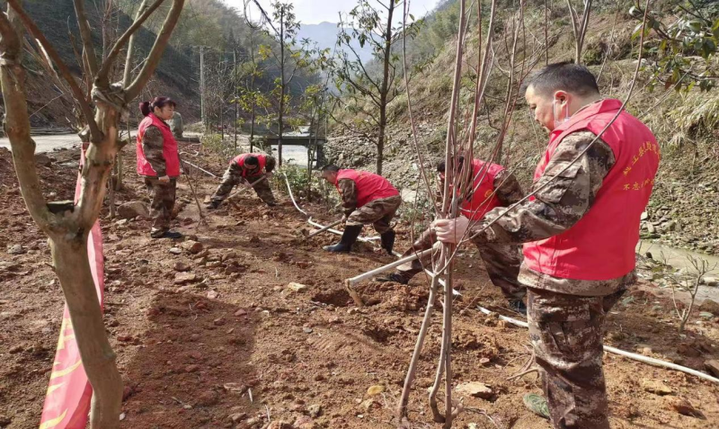 植树现场,干职工们分工协作,配合默契,或挥锹铲土,或扶直苗木,或踏土夯实,共同种下树苗。“植树就像做人一样,根基要深、立身要正。”老职工邹典文边培土,边向年轻的同事说道。在大家的共同努力下,连排成行的树苗迎风挺立,焕发着勃勃生机。