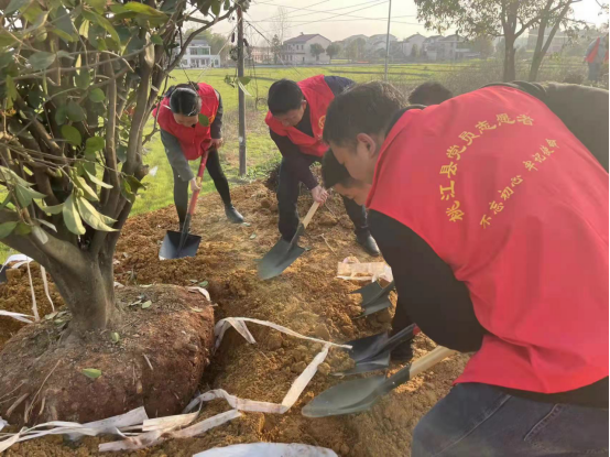 植树现场,在高桥镇党委书记文有洪,高桥镇党委副书记、镇长龚电明的带领下,党员干部、志愿者们热情洋溢、干劲十足,以饱满的热情投入到播种绿色的行动中,春日暖阳下,松土、挖坑、安置树苗、填埋、浇水......怀揣着对生命的敬仰,一起动手为这一棵棵稚嫩的树苗“安家”,以实际行动为高桥增添了绿色与活力。