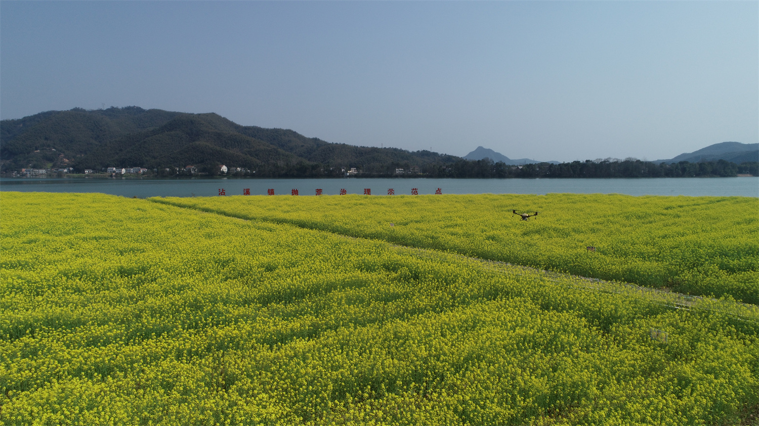 3月13日,沾溪镇白沙洲社区抛荒治理地上油菜花开正旺。农业大户殷文华请来的专业人员正操作植保无人机对油菜田喷洒施药。无人机在花海上来回穿梭,螺旋桨下一片水雾均匀喷洒在田地,不到十分钟作业面积就达到了20余亩。