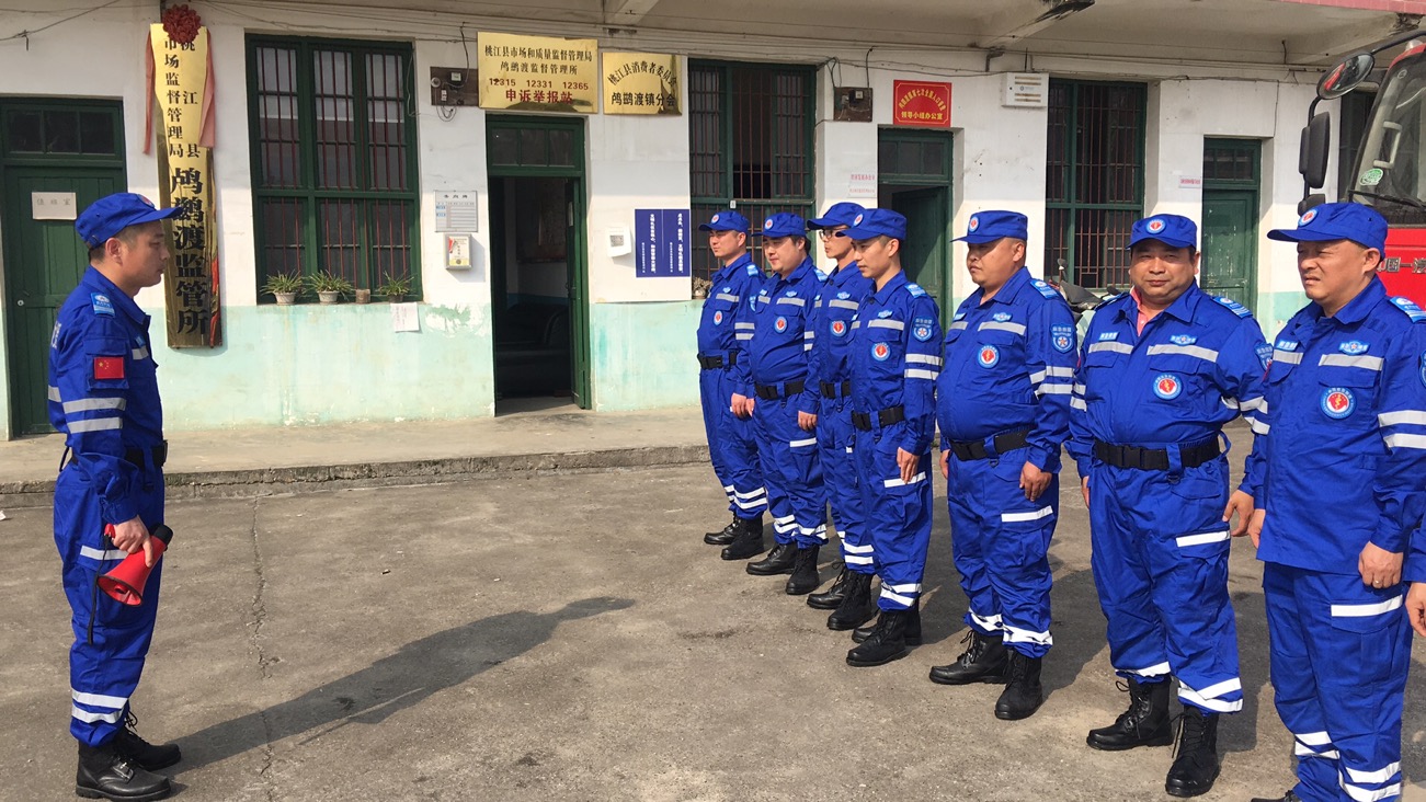 图为镇应急救援队组织队员紧急集合 尹跃辉摄