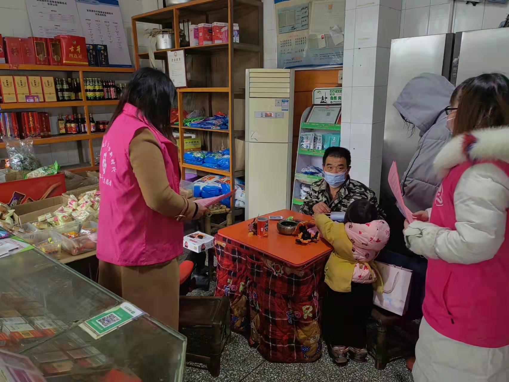 图为长江村妇联执委到各门店宣传疫情防控