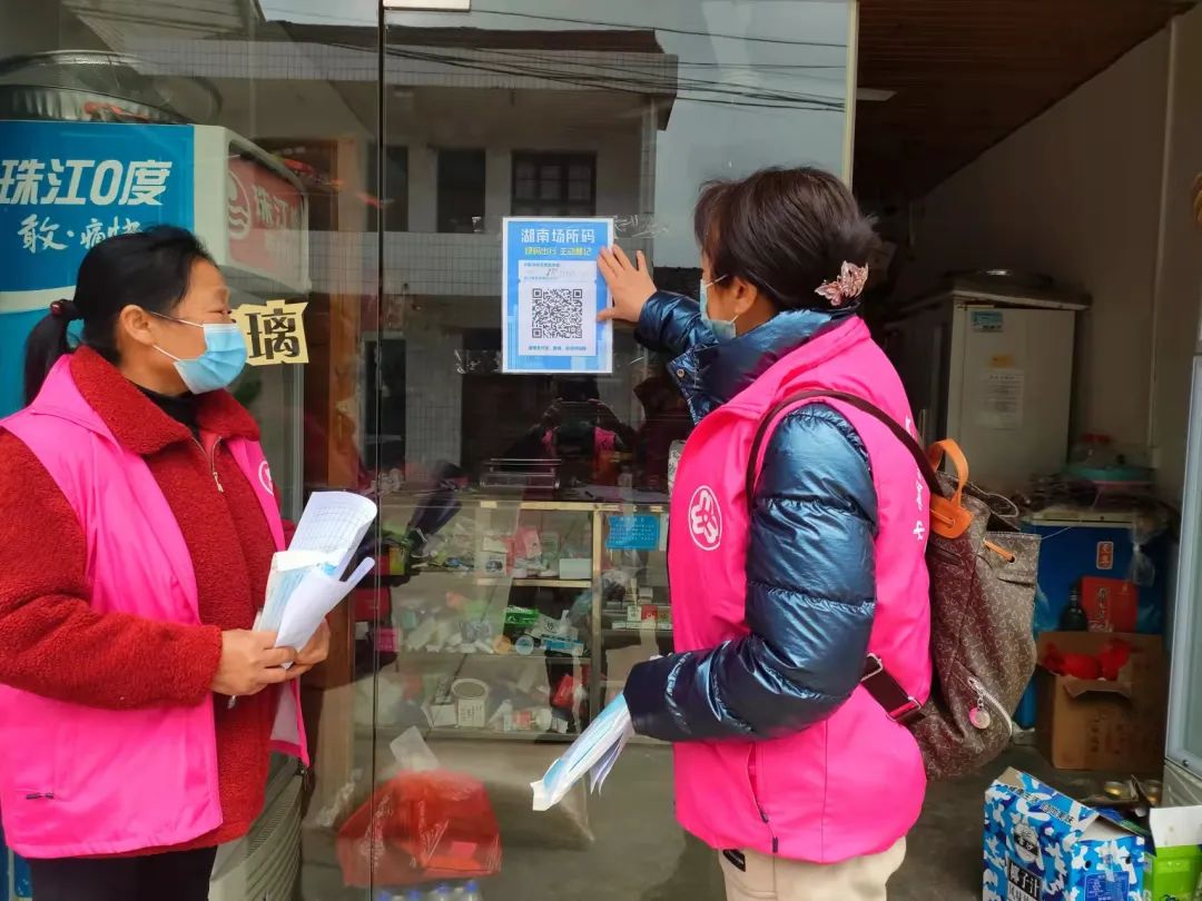 妇联执委为门店张贴“场所码”