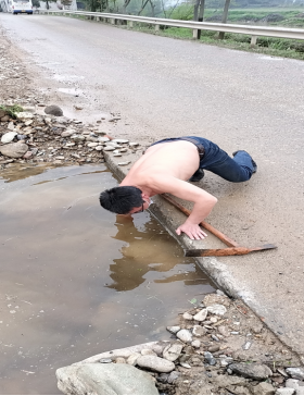 “运气真好,涵管堵塞的地方我的手能摸得到,拿个锹过来捅一捅说不定能通。”找到问题所在后,钟放明拿起从村民借的锹往堵塞处不断地小心敲击。经过半个多小时的努力,堵塞的地方终于被疏通,此时钟放明已经浑身是水,分不清到底是汗水还是泥浆水。