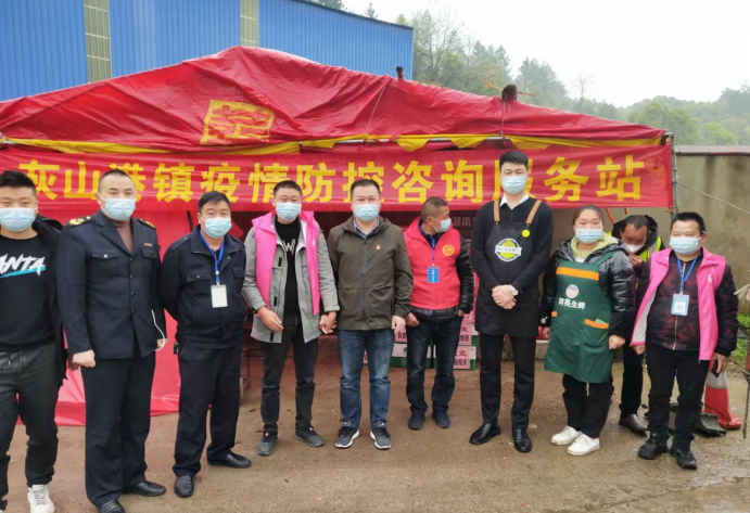 灰山港镇党委副书记俆建召集灰山港市监所、综治办联合组织2家爱心门店,对全镇7处疫情防控健康服务站进行慰问走访