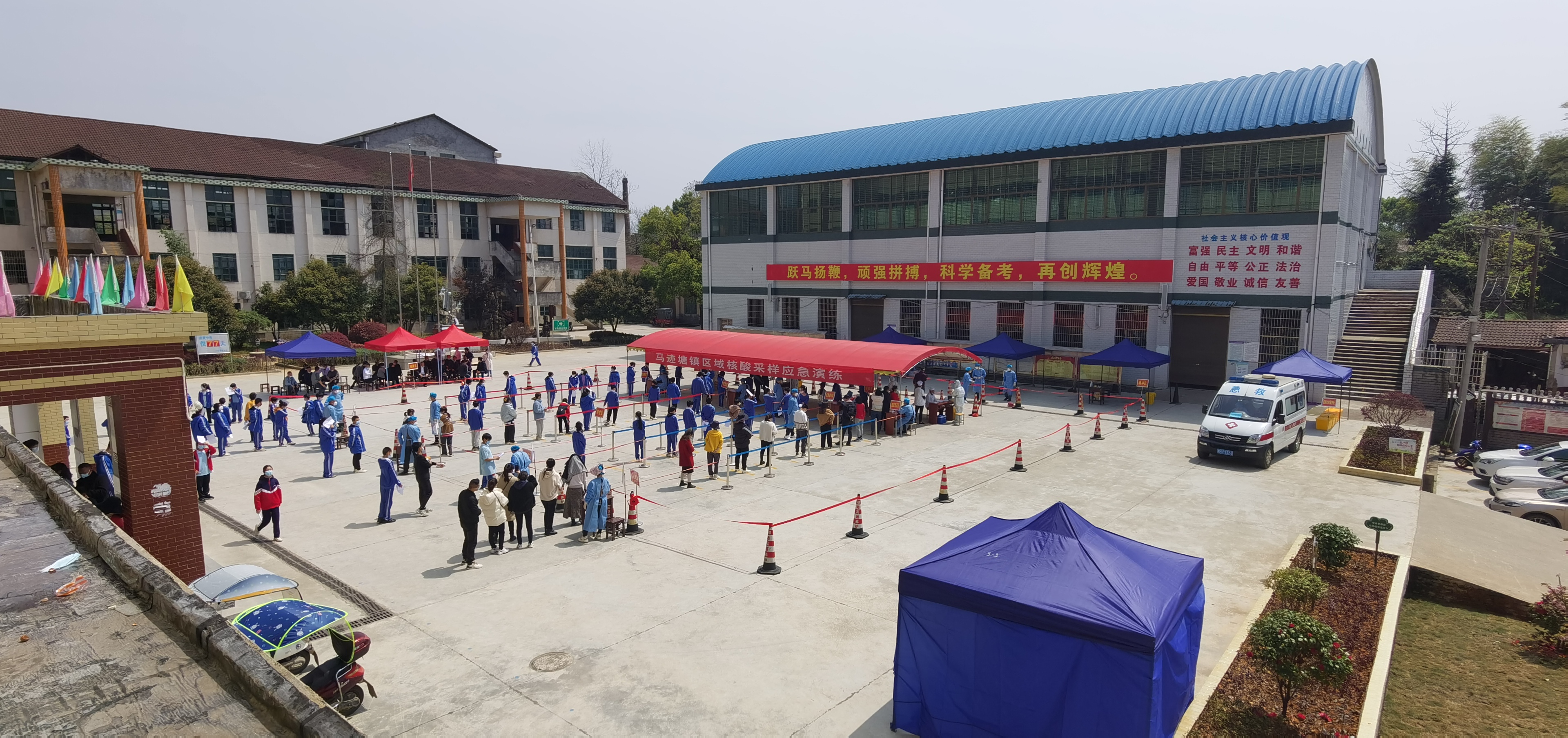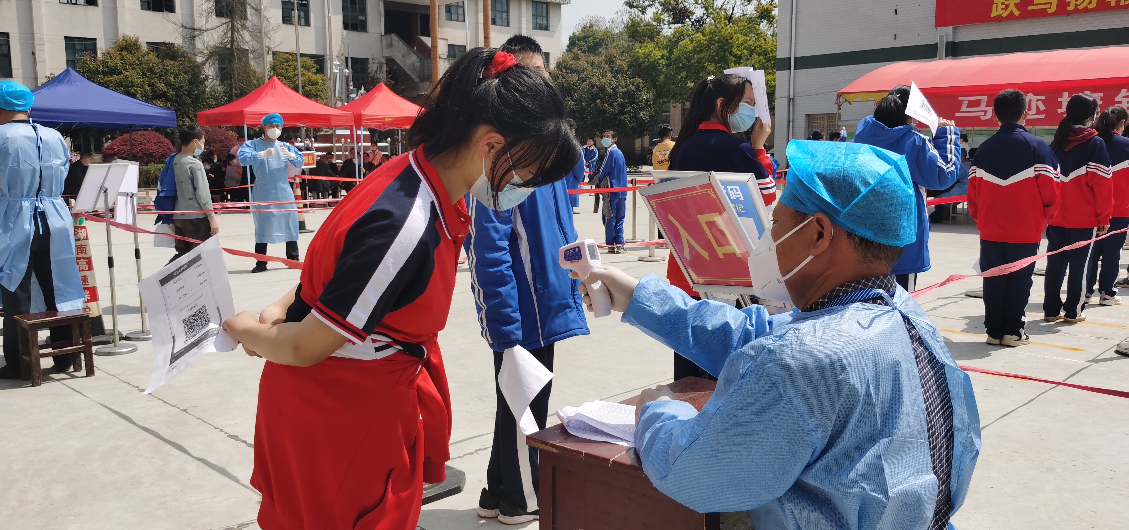 4月2日下午,由马迹塘镇党委政府举办、桃江县第三人民医院和马迹塘镇中心学校承办的区域核酸检测应急演练在马迹塘镇中学举行。