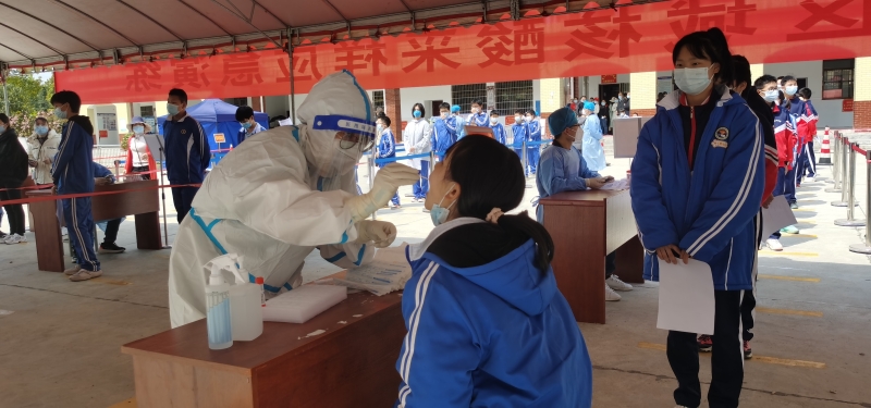 大约2个半小时后,该校1000余名师生全部完成采样并安全撤离现场。采样人员将双层黄色医疗废物收集袋封装、称重后,在外包装上贴医用废物专用标签,放在医疗废弃物暂存处,由专车转运至医院做好交接登记。最后,消杀工作人员对采样点场所进行了全面消毒。