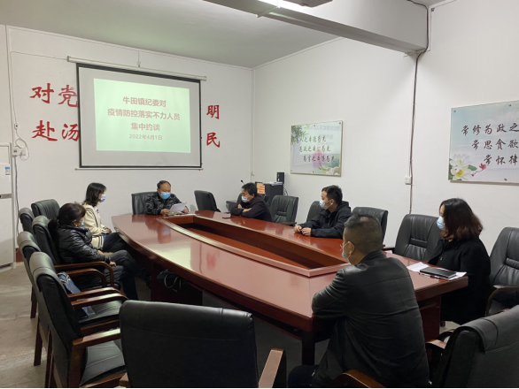 近日,牛田镇纪委负责人对该镇疫情防控措施落实不力的相关单位负责人进行了集中约谈。