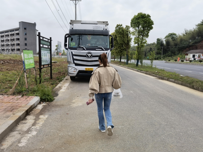 4月15日早上8点,在桃花江镇罗家潭村委旁,一辆牌照为黑A的大货车上下来一名男子,手拿着锦旗兴奋地向村委跑去。