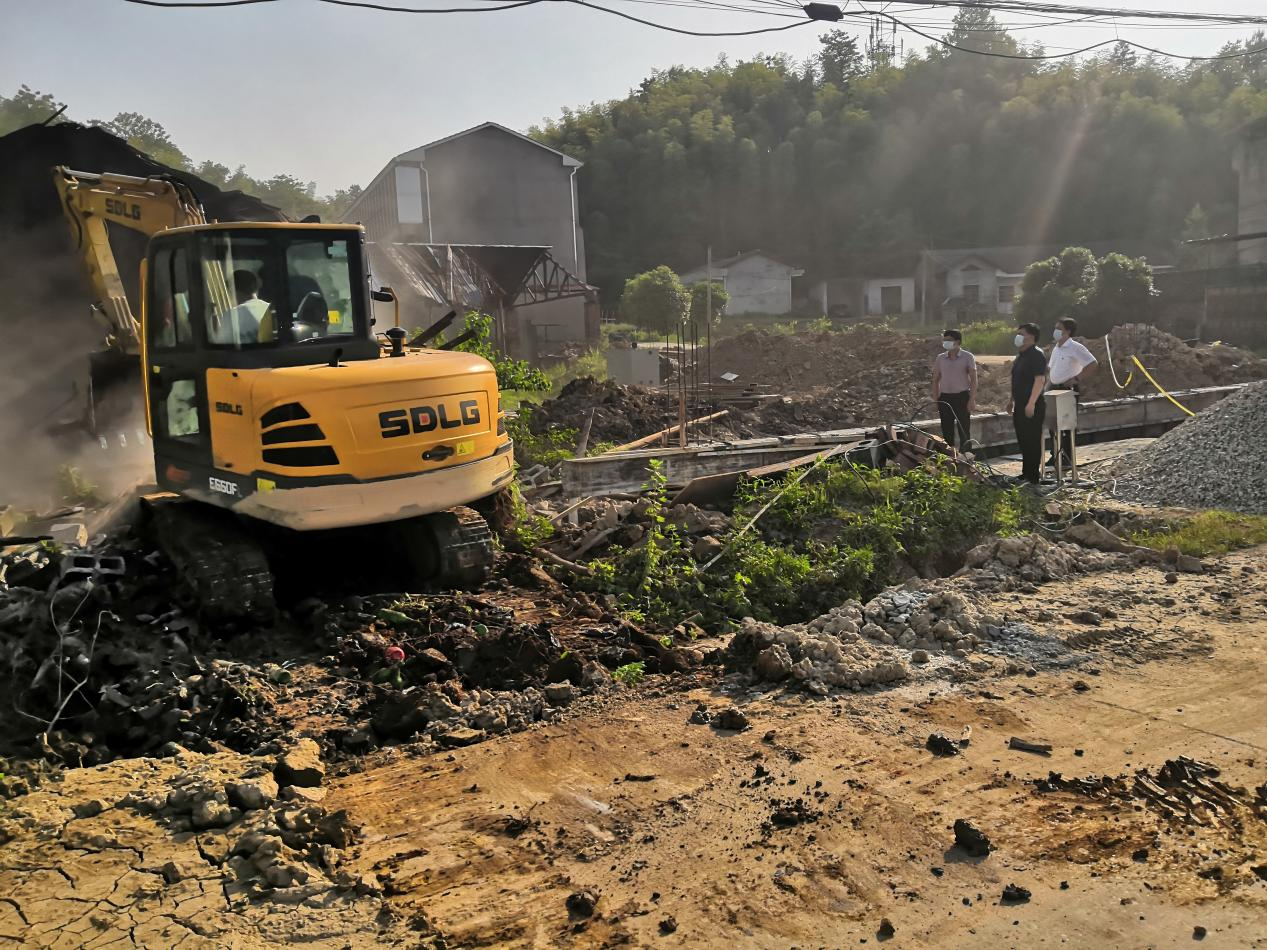 5月6日,大栗港镇筑金坝村街道旁一处占地面积约1.17亩的闲置隐患房屋正在被拆除,这是该镇开展建设领域安全专项整治工作的一个缩影。