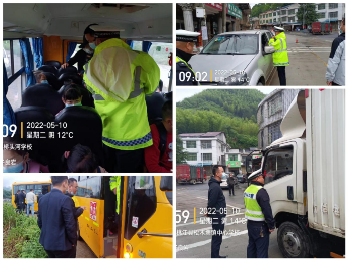 5月10日上午6点,松木塘镇应急办联合灰山港交警中队、石牛江交管八中队、镇派出所、镇农业综合服务中心、镇行政综合执法大队对辖区内校车安全和道路交通进行突击检查。