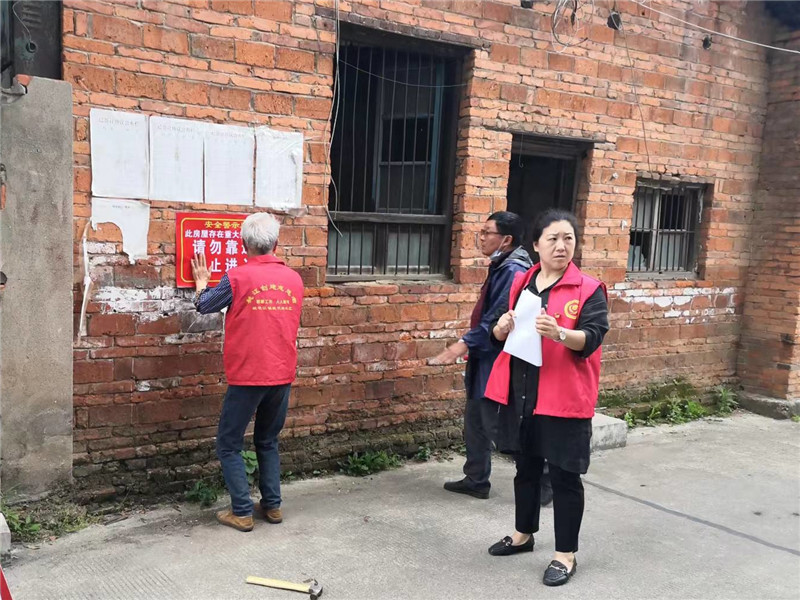 “芭茅洲组有一栋墙壁开裂的红砖屋,已拍照上传。”5月18日上午,该镇打石湾社区的网格长袁建华正逐屋逐户排查隐患,每到一户他都会喊上户主把屋里屋外仔细检查一遍,详细登记房屋建设年代、入住人数以及有无改建等信息,并积极宣传地质灾害预防、逃生自救等安全常识,切实提高群众自主安全防范意识。