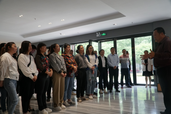 在湖南艾华集团股份有限公司,参观组认真听取了董事长艾立华在党建工作、企业管理、乡村振兴等方面的先进经验和做法,详细了解了该公司将“艾上扫除”文化创新管理模式引入乡村振兴实践的经验,并实地参观了公司党建展厅、生产车间、员工宿舍等地。