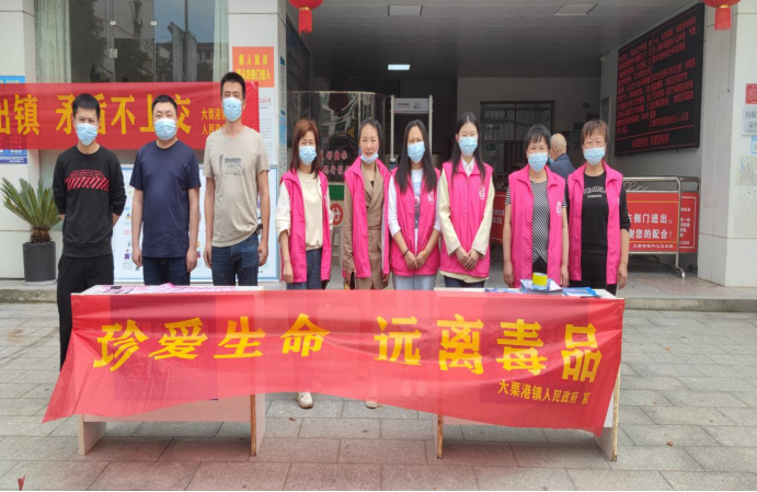 近日大栗港镇禁毒办、妇联组织30多位“禁毒妈妈联盟”的志愿者开展“不让毒品进我家——无毒万家兴”禁毒宣传进社区、进家庭活动,并在辖区人流量大的广场等地积极开展禁毒宣传。