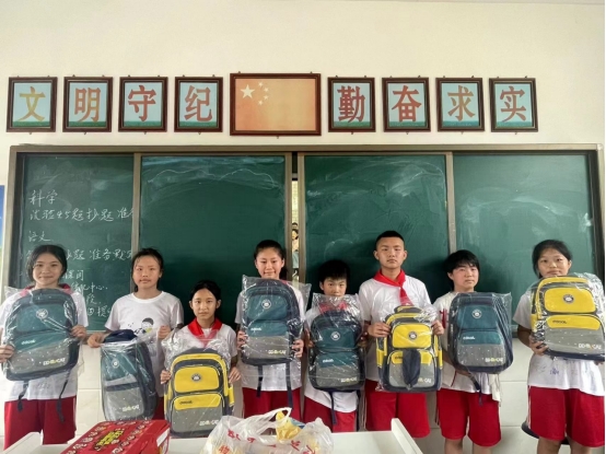 图为困境学子领取爱心书包