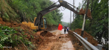 镇应急救援队在省道231龙牙坪段清理路面障碍,维护交通秩序。