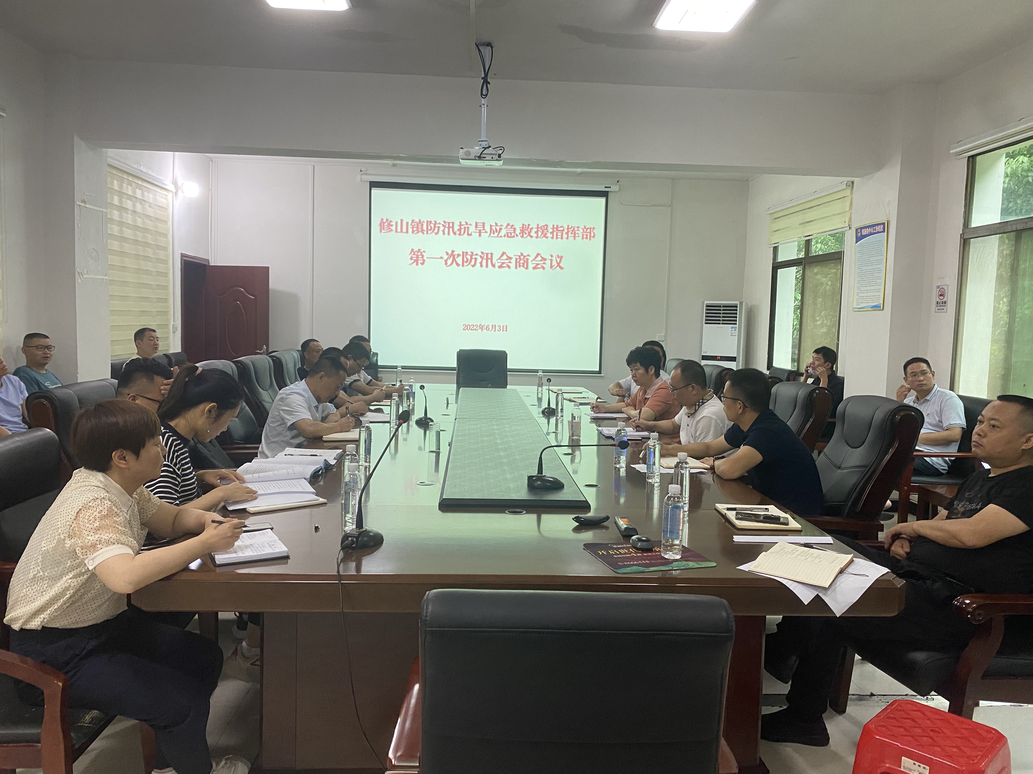 6月3日8时,修山镇防汛抗旱指挥部召开第一次防汛会商会议,传达落实上级关于防汛工作具体部署和要求,听取各办负责人对各村(社区)山体滑坡抢险、水库山塘查险除险、人员转移安置、灾情统计、后勤保障等工作情况汇报。会议强调,全镇抢险救灾队伍、镇村干部要加强统一调度,强化纪律问责,不计一切代价打赢防汛抢险救援战。