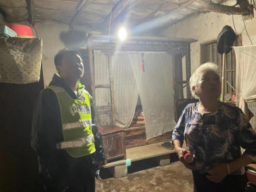 图为镇村干部深夜前往群众家中,劝导群众搬离