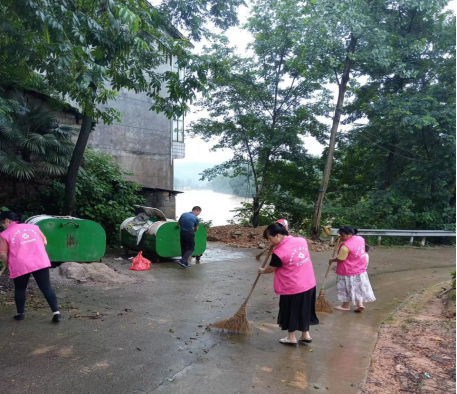 作为一名在村上工作了二十来年的妇女主任,符孟娇以身作则,始终坚守在防汛工作一线。在伍家洲村经历了一整晚暴风雨的肆虐后,她一大早组织妇联志愿者,去到村里各滑坡处、地质灾害隐患点,协助村干部设置警示牌,并安排保洁员,开展常态化的清扫保洁,清除暴雨造成的垃圾及泥沙淤积,加大村庄内池塘、沟渠整治力度,做好边沟清障清污工作,确保排水畅通,防止村庄出现内涝,为防汛救灾工作打下基础。