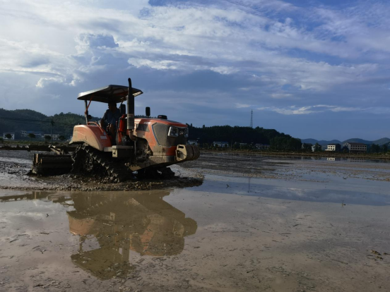 6月5日一早,一台履带式旋耕机正在三堂街千亩示范片进行翻耕作业,这是该镇益农合作社突遭山洪汛情后,抢抓晴好时节,积极开展生产自救的场景。