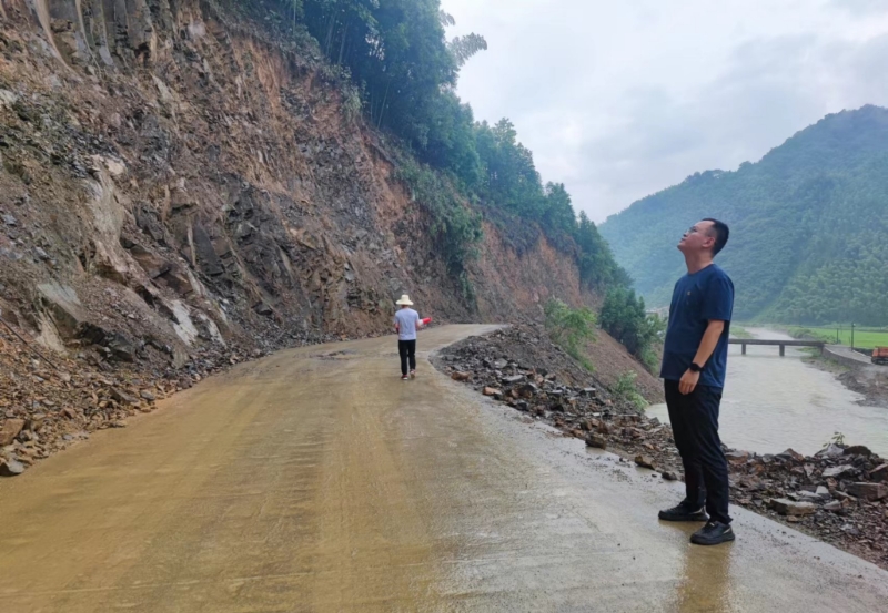 镇党委副书记、镇长石龙查看枫腊线地质灾害隐患点情况