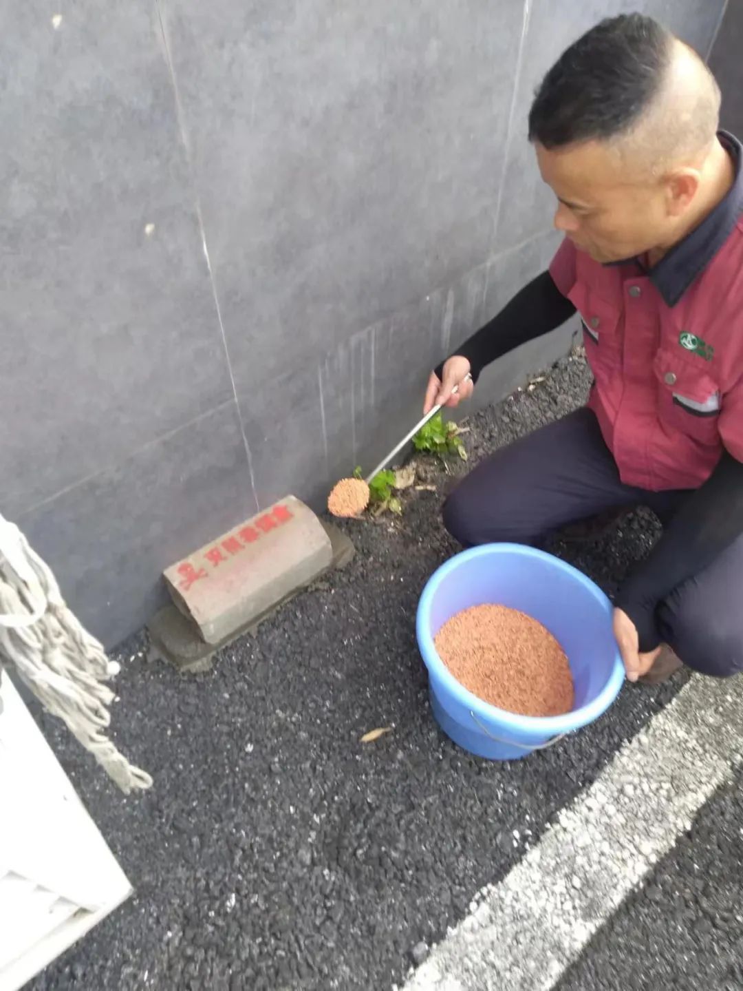 镇爱卫办工作人员同公司专业消杀人员一起在辖区内进行全面排查,将损坏的毒饵站及时更换,对鼠药投放点进行清理,清除积存过期的鼠药,集中进行新鼠药的投放工作。