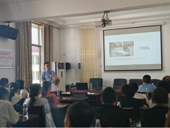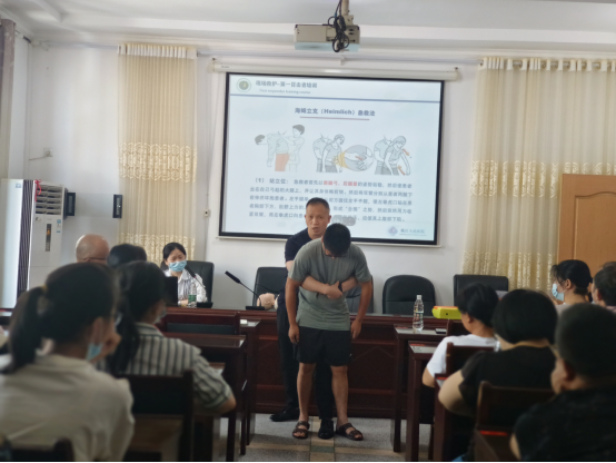 “胸外按压开始,频率每分钟100-120次以上,深度5-6厘米……”6月15日,该院组织全院医护人员和乡村医生开展“现场救护第一目击者行动”培训,特邀县人民医院专家授课。