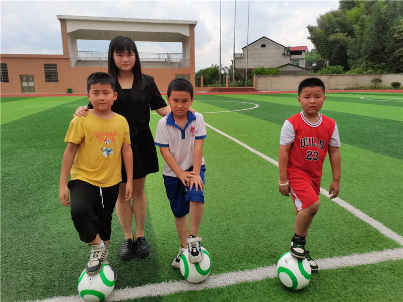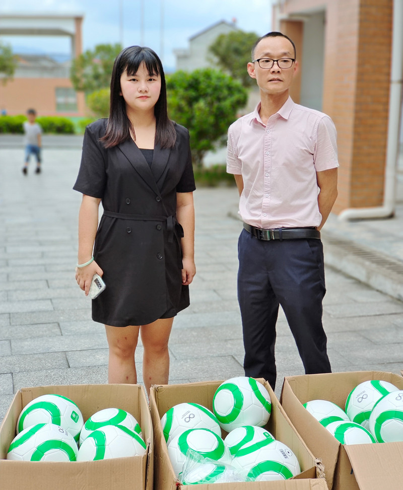 给孩子们带来这份快乐的是“90后”常德小姐姐刘秀芝,她通过懂球帝足球星火公益计划获得了30个新足球,并将这些足球转赠给了小山湾学校。