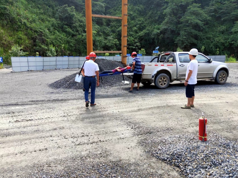 应急演练现场模拟了某工作人员因意外坠落受伤,需进行紧急救援和应急处置。“事故”发生后,新鑫石料立即启动应急预案,应急救援组、医疗组迅速到达“事故”现场,将伤员送往医院救治,整个过程紧张有序、配合紧密、准确高效。