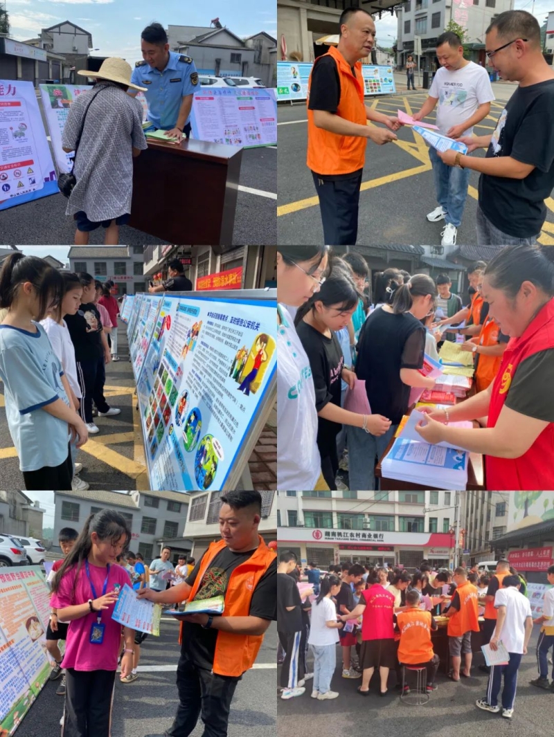 工作人员在该镇小商业中心前坪设置安全生产宣传台。通过现场讲解、发放宣传资料、悬挂宣传标语、设置展板等形式向群众集中宣传安全生产、防灾减灾、森林防火、防溺水、食品安全、禁毒、反诈、防范非法集资、道路交通等安全知识,全面提升群众安全防范意识和避险自救能力。