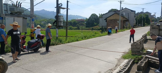 近日,鸬鹚渡镇牛鸬公路热闹非凡,不时有工作人员拿着皮尺在牛鸬公路上测量路基长度,村民也积极参与其中,一边为政府工作人员介绍周边田地的使用性质,一边招呼工作人员到自己家门口划定地基线。